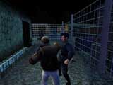 The graphics are serviceable, with decent character models and well-rendered backgrounds. Anything dealing with animation or special effects is terrible, however. While watching a guard on patrol, you will notice that he stops mid-stride and pivots on one foot in order to turn. The motorcycle crashes are absurd. There is a moment in the game when Hilts ambushes a motorcycle rider by clotheslining him with a length of cable. The scene becomes unintentionally humorous as the rider connects with the cable and bike disappears, leaving him standing next to the cable. Then he lies down and moans. It is like watching a death scene in a bad amateur dinner theater performance.